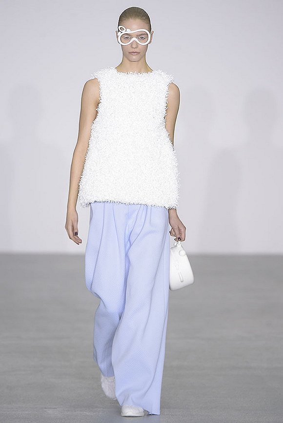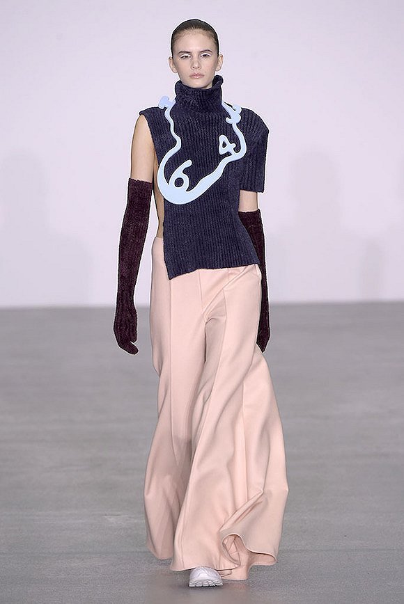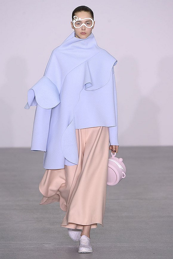 毕业于针织专业的李筱身上的中国味儿更淡一些,她的实验性服装带着达利的超现实主义:毛茸茸的线绒毛衣、不对称袖与巨大的弯曲状花边。其市场可行性虽然是个问题,可李筱擅长的感性色彩几乎能在第一眼就控制住你的心跳节奏。也难怪老牌设计师 Azzedine Alaa 和 10 Corso Como 创始人 Carla Sozzani 都表示过欣赏。