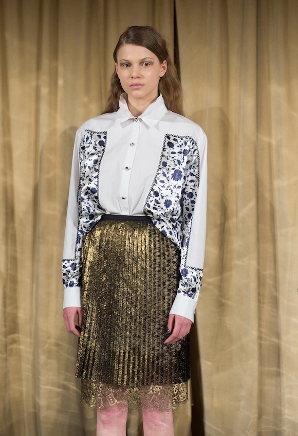 在本季伦敦时装周上呼声颇高的李筱与张卉山被安排在关键的时间位——紧随本地品牌 Jonathan Sauders、Richard Nicoll 和 Meadham Kirchhoff 后发布。曾在 Dior 高定工坊磨练过的张卉山已摆脱早期对于中国风格的运用,呈现出更普适的女装观念。就拿这次秋冬系列为例,他将印花丝绸以集合拼贴的形式呈现出来,灵感来自中国瓷器。从波尔道夫到布朗斯百货,他的时装如今可以很骄傲地和 Giambattista Valli、Emlia Wickstead、Erdem 等品牌并立。