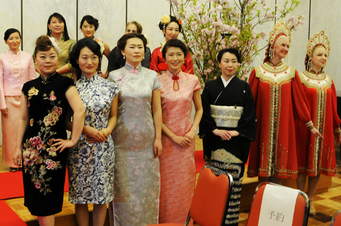 【海峡服饰产业网】4月19日讯 四月的大阪乍暖犹寒,位于大阪府丰中市的俄罗斯驻大阪总领馆内洋溢着热烈的气氛,一场慈善时装秀正在进行,中国、韩国、日本、俄罗斯等8个国家驻大阪总领馆的女外交官等展示了各自国家的民族服装,身着旗袍的中国女外交官们尽展东方风韵,赢得一片喝彩。